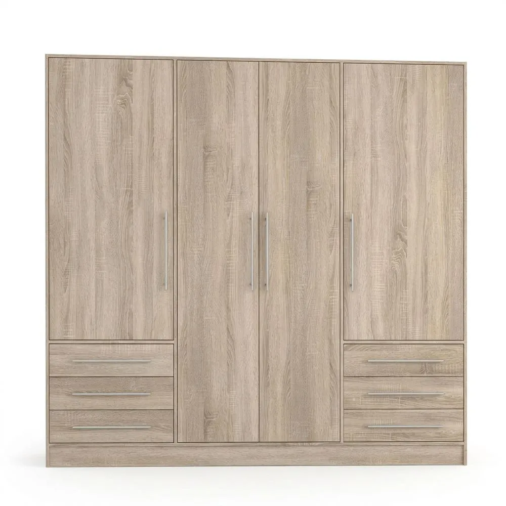 Armario de 4 puertas con 6 cajones y estantes, roble sonoma, 206.5 x 60 x 200 cm