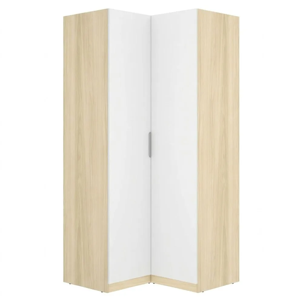 Este armario de esquina ofrece un acabado en blanco y roble natural claro, proporcionando un diseño cálido para optimizar tus rincones. Con 203 cm de altura y 96.6 cm de ancho, su diseño está pensado para aprovechar las áreas difíciles. El interior incluye barras y estantes ajustables, permitiendo configurar la distribución según el tipo de ropa o accesorios que necesites almacenar. Incluye dispositivo de fijación a la pared para mayor seguridad y tacos de ABS que protegen el suelo y reducen el ruido. Se proporcionan instrucciones detalladas de montaje paso a paso.