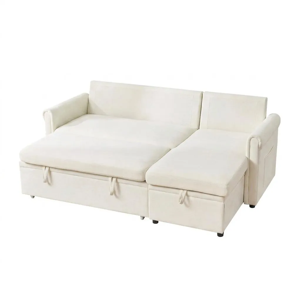 El sofá esquinero, adecuado para 3 o 4 personas, se convierte fácilmente en cama con una superficie de descanso generosa. Es ideal para espacios pequeños y diseños minimalistas.