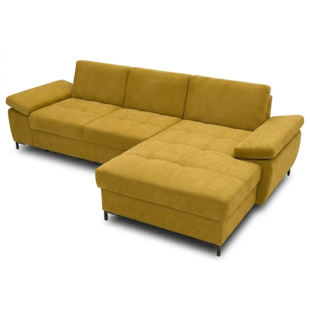 El sofá de esquina combina diseño y comodidad. El núcleo de muelle de alta calidad y los reposabrazos ajustables en 2 posiciones proporcionan una experiencia de asiento relajante. Los pies metálicos completan su apariencia armoniosa.